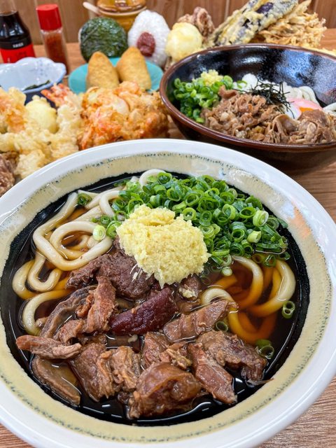 醬油湯底烏龍麵+大量的滷製牛筋+牛頰肉