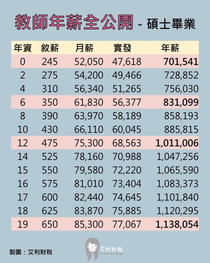 → hushaoan88: 有啊 教師年薪表網路上有吧 11/30 15:52