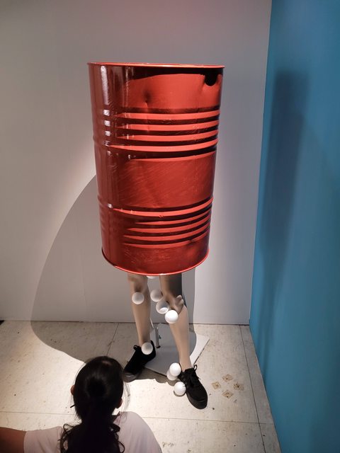 上半身穿著汽油桶