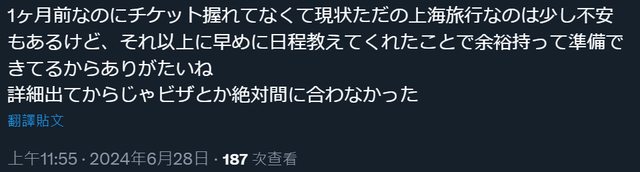 他原本還擔心門票搞不定,變成單純的上海觀光