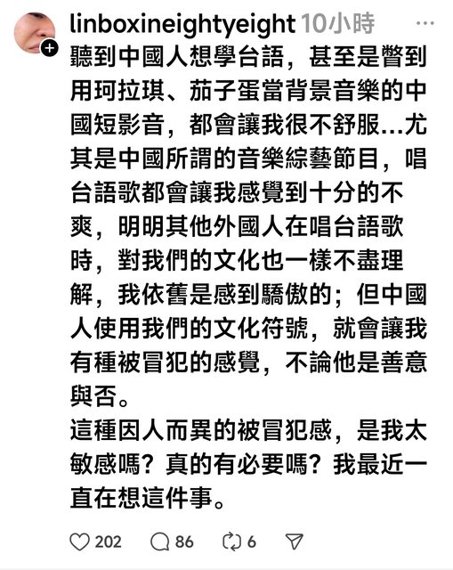 標題[姆咪] threads:中國人學台語冒犯我們了!