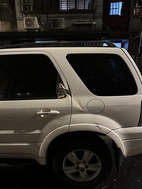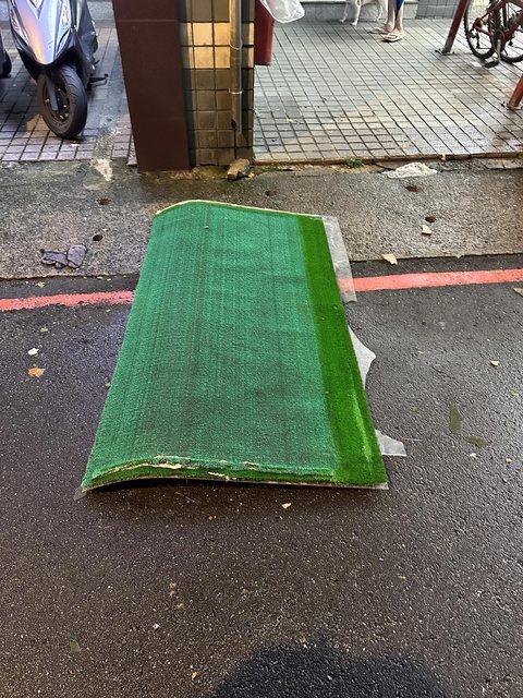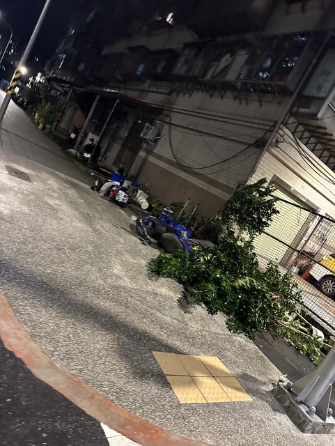 你悶看 我剛剛 趁著風小 出去外面晃一下 然後 看到有車的玻璃破掉了 環河那邊的鐵皮都倒了 豪屌喔 -- 你知道照片中的阿ㄆㄧㄚˇ在幹嘛嗎?
