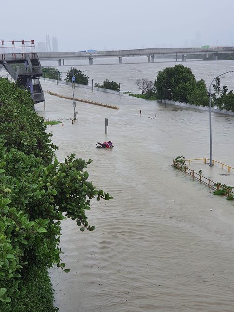 : 車主在嗎?新莊夜市水門外,水都快淹上來了。