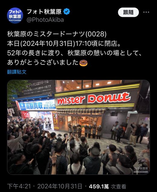 在秋葉原開了52年的甜甜圈店昨天島了