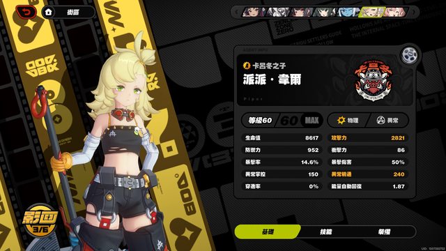 派派是3+2 這邊我把等級跟專武先拉滿 核心點到E