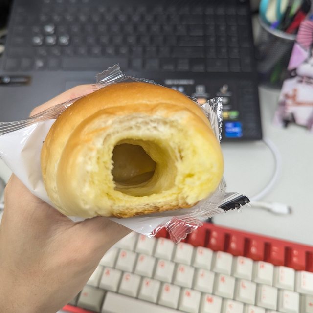 咬一口發現這麵包跟飛機杯一樣