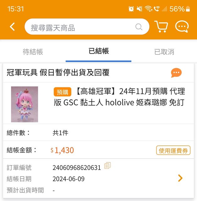標題[瓦特] 國母塑膠還沒出貨