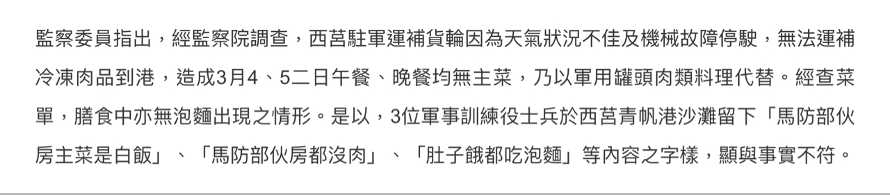 → diyaworld : 查的就是吹哨者説3/4-5沒東西吃,是否屬實,監委只 06/20 10:15