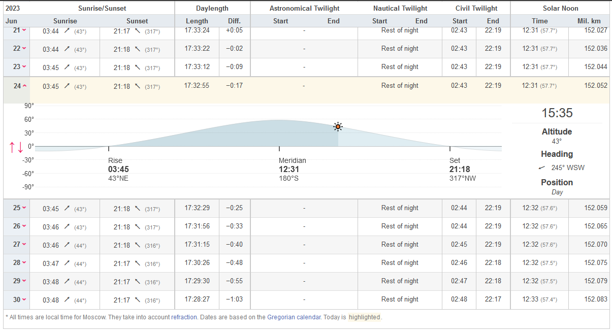 推 TAKANA : 問一下。莫斯科當地日落時間是幾點? 06/25 01:15