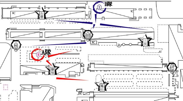 B隊拆成2個大部隊,進行兩側戰場戰鬥