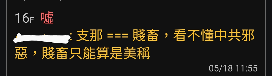 → Tahuiyuan : 「某T支那賤種」,這個平心而論,該桶,被罵的人若 07/03 08:20