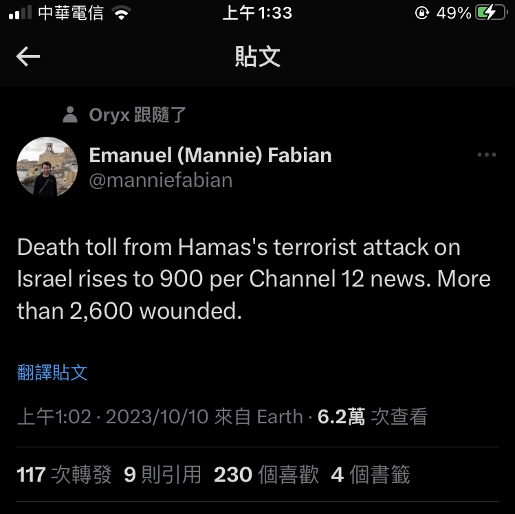 → Hitagi : 在加薩走廊所謂居民表態反抗哈馬斯之前 我支持以色 10/10 01:37