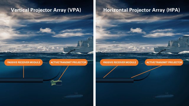 來部署可變深度聲納(VDS)來當作主動發射聲源,能更方便地安裝整合到船艦上,船艦部