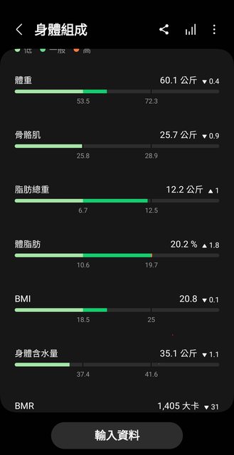 體脂計測量出來脂肪是18.7% 和手錶測量出來的差1.5%