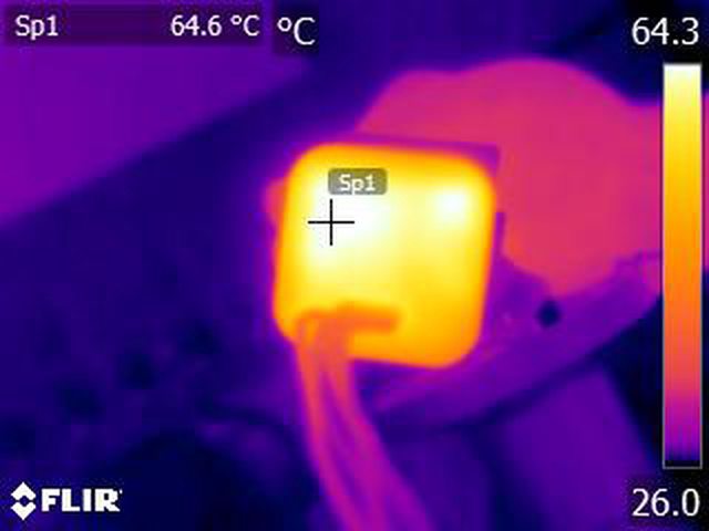 ▼輸出20W連續一小時後連接埠處的紅外線熱影像圖