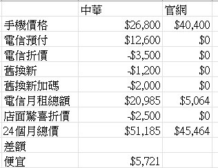 → kashima228 : 然後我是跟官網價格加上我211門號*24個月去比較 09/20 20:58