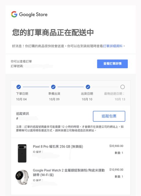 推 colin8930 : 我的128也出貨了 10/11 12:29