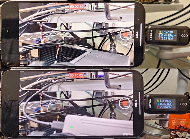 察消耗電流/功率,手機及儲存裝置的紅外線熱影像圖(測試環境室溫維持27度)。3款外接
