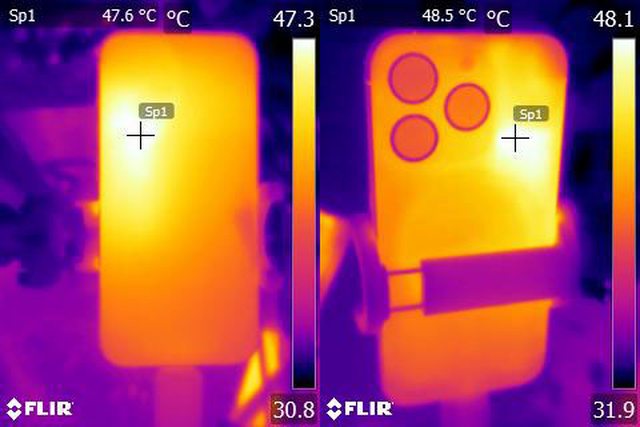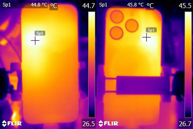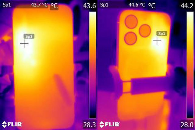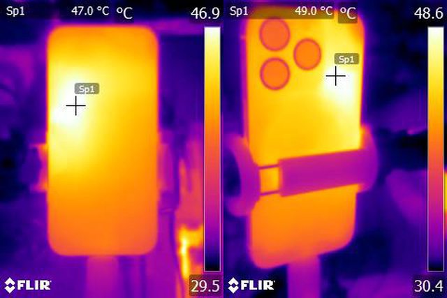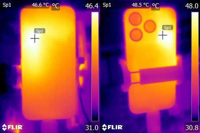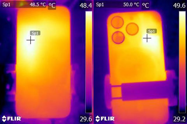 ▼ProRes HDR 4K/60fps格式影片錄製20分鐘後Apple iPhone 15 Pro正面及背面的紅外線