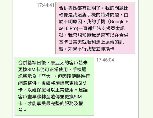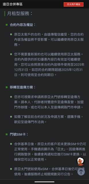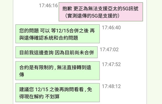 路,終於確定合併基準日是今年12/15,但看到合併專區、同時也詢問遠傳、亞太門市和網