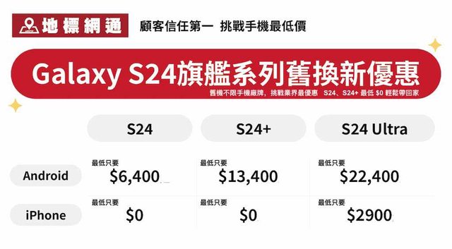 在地標網通預購三星S24系列 不限廠牌舊換新 0元即可入手