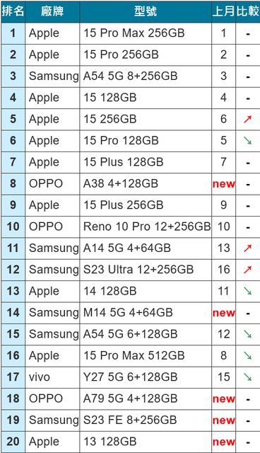 2.原文標題:挑機看指標:2023 年 12 月台灣銷售最好的二十款智慧型手機排行