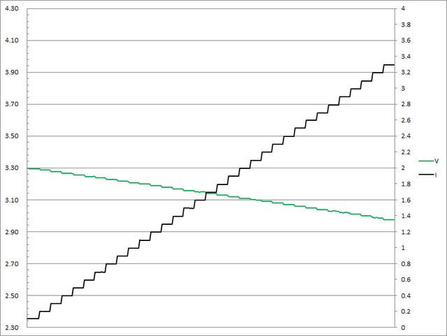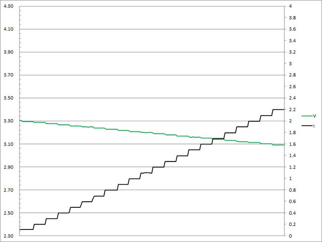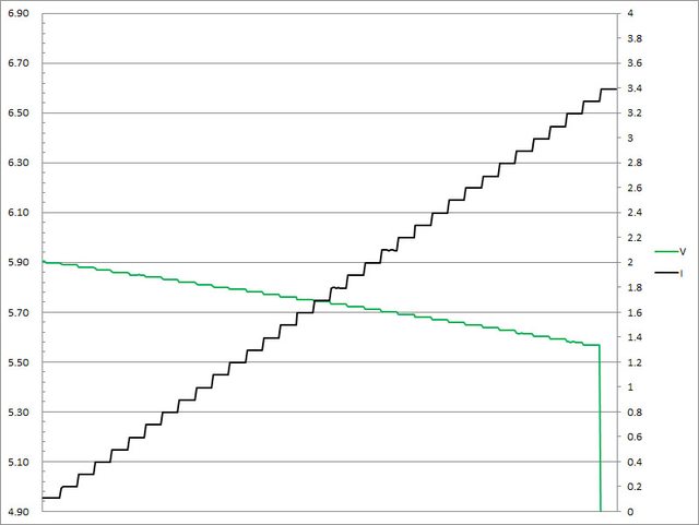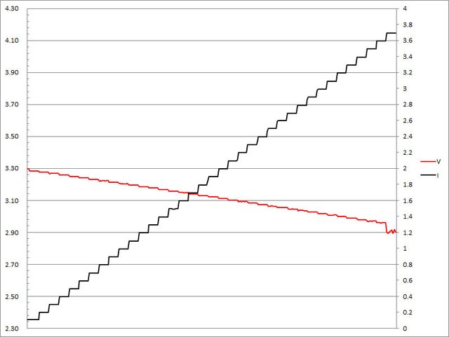 過3.3A大幅壓降,超過3.4A截止