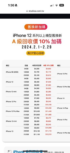 這是studio A 舊換新估價表