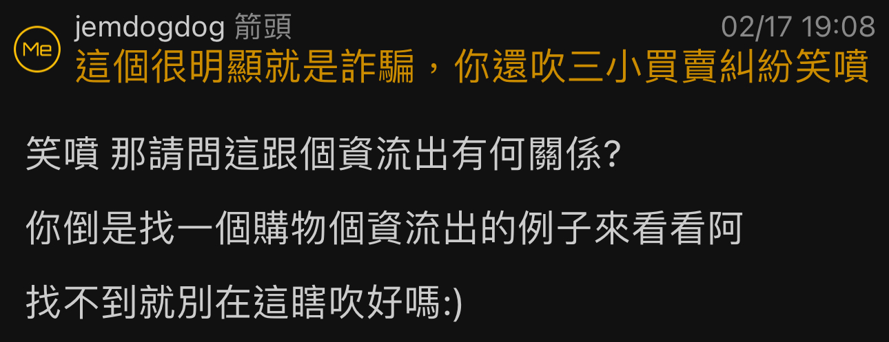jemdogdog : 人家已經定性為詐騙,卻說是買賣交易糾紛,這不是 02/18 05:29