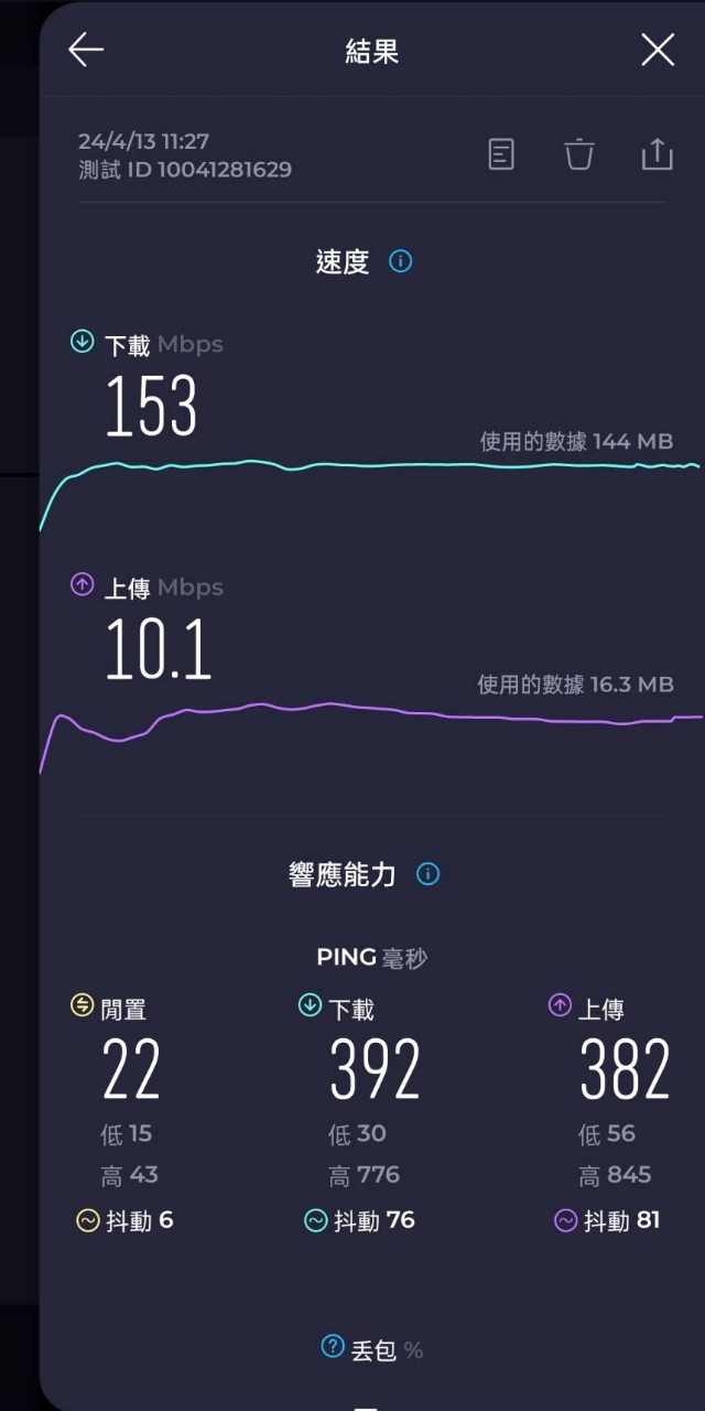 dowcher : 我的台星門號最近變得很卡很不穩,同個地點測出來 04/12 20:10