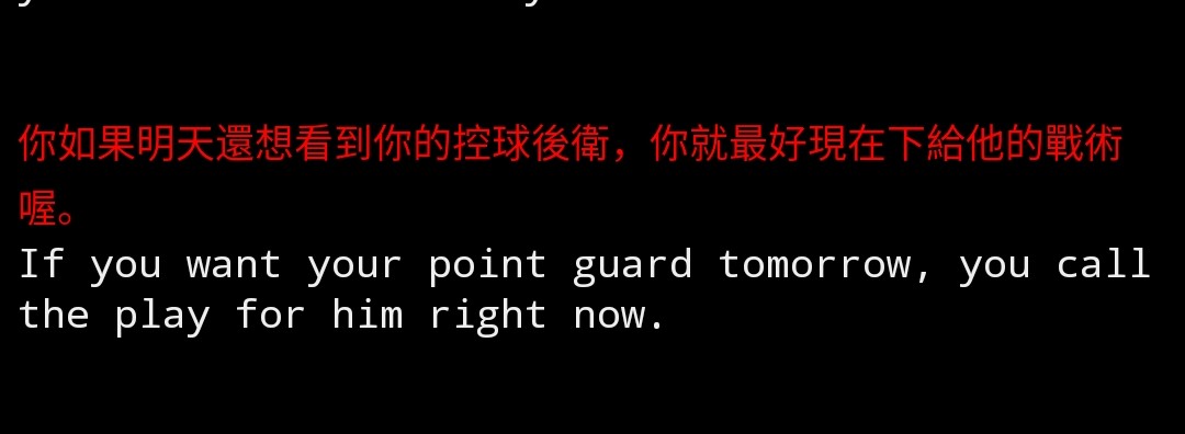 推 KBchen : "明天還想打控衛的話,你最好把戰術做給他" 08/14 09:13