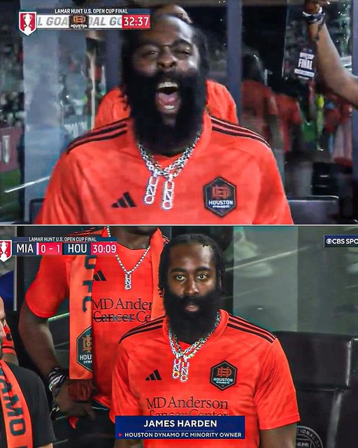 身為休斯頓迪那摩隊少數股東的哈登,在美國公開盃決賽賽後出現在頒獎台上,準備為冠