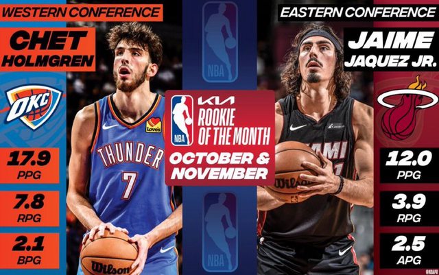 標題[情報] 10&11月最佳新秀 雷霆Chet/熱火JJJ