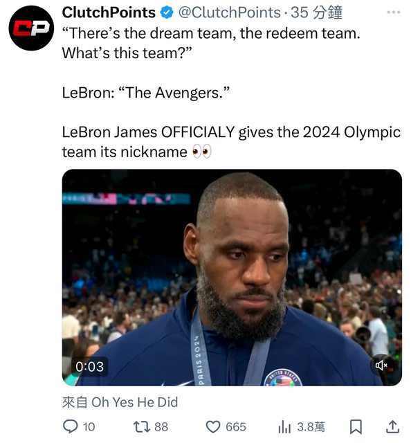 → yniori : 薩諾斯是jokic!看看打四強那場~美國差點被翻掉! 08/11 12:42