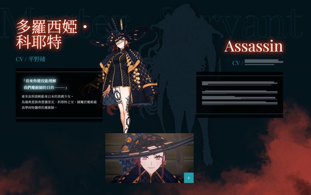 Assassin組從者也是只有剪影,御主是Trailer中登場的科耶特家長女多羅西婭・科耶特