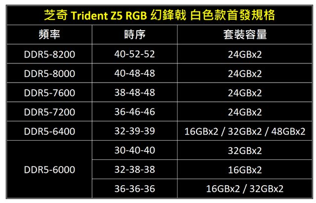 標題[情報] 芝奇推出白色款Trident Z5 RGB DDR5