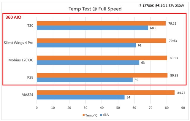 註:下方圖表紅框處為以360mm AIO水冷散熱器測得之結果,以便與MA824結果區別。
