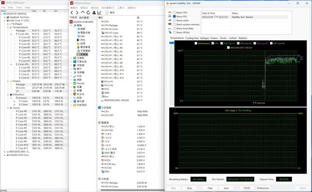 一樣的設定下,單烤FPU 10分鐘後,HWMonitor軟體內數據:Package最高溫度92度,各核