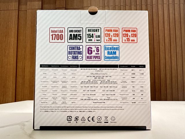 背面標註特色及散熱器、風扇規格,簡單表列如下: