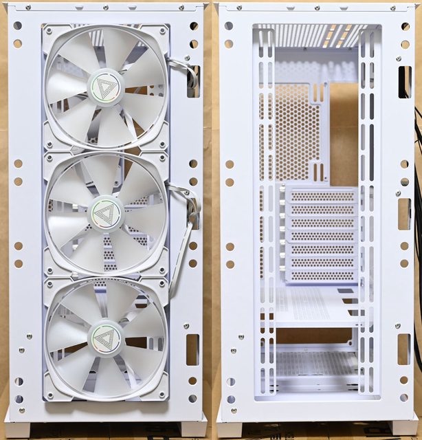▼前方預裝3個白色款HP140 140mm ARGB PWM風扇,風扇安裝在外側,長條形固定孔可安