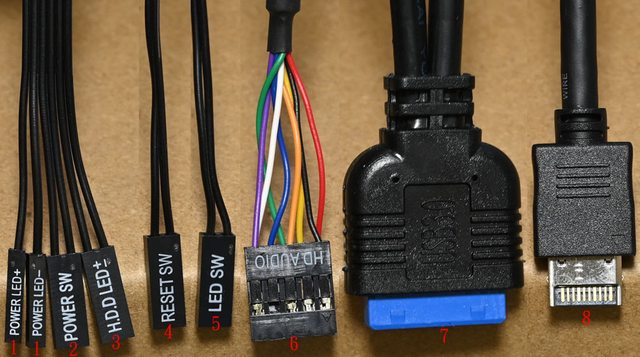 光開關,6為前置音效插座的接頭,7為USB3.2 Type-A的19pin接頭,8為USB3.2 Type-C的
