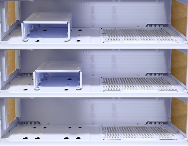 上/中),不安裝時可得到最大電源供應器安裝空間(下)