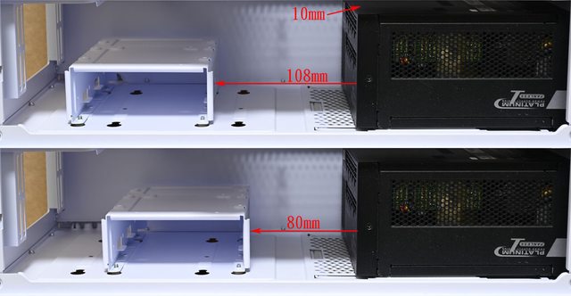 是108mm及80mm,電源供應器上方與電源艙頂部距離10mm