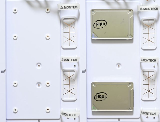 ●底板背面前方可安裝2個2.5吋SSD,底板背面右下方2個2.5吋固定架可安裝2個2.5吋SSD