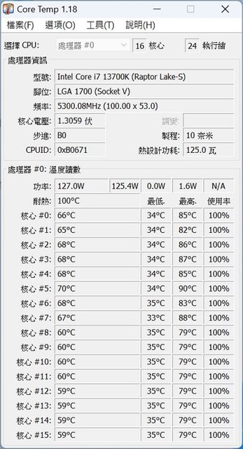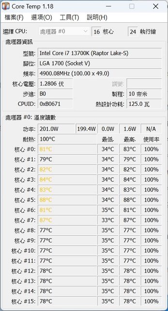 13700K @1.2v 5.3G 空冷 CPU 溫度