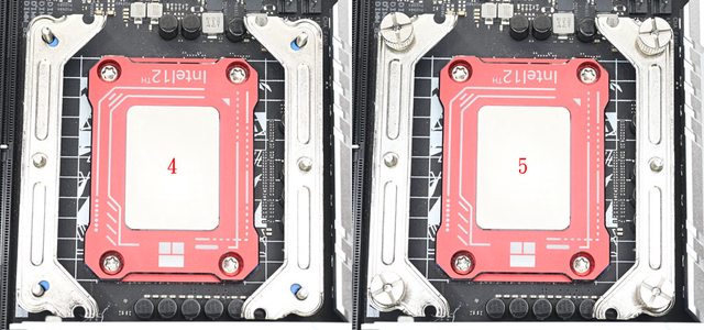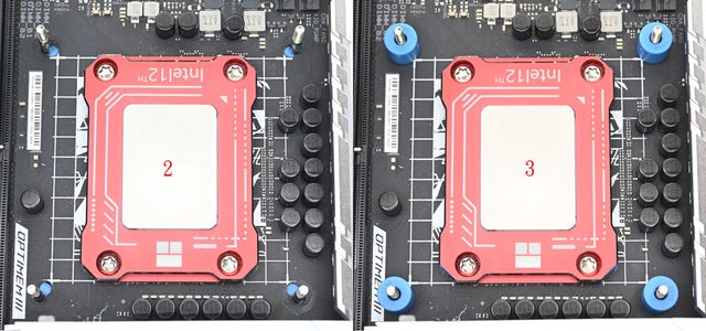 ▼4個螺柱底部有正方形凸面,將螺柱正方形凸面朝外側裝(左),為對應LGA1700平台配置