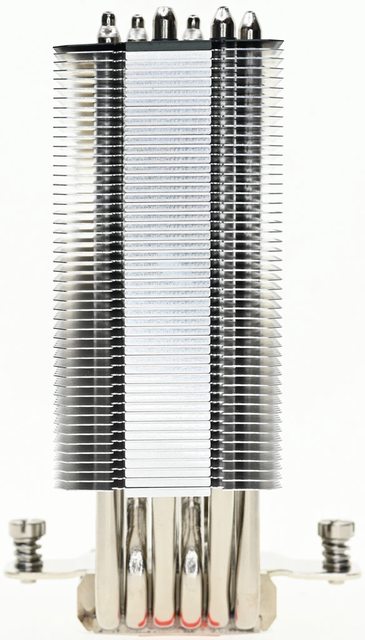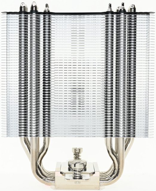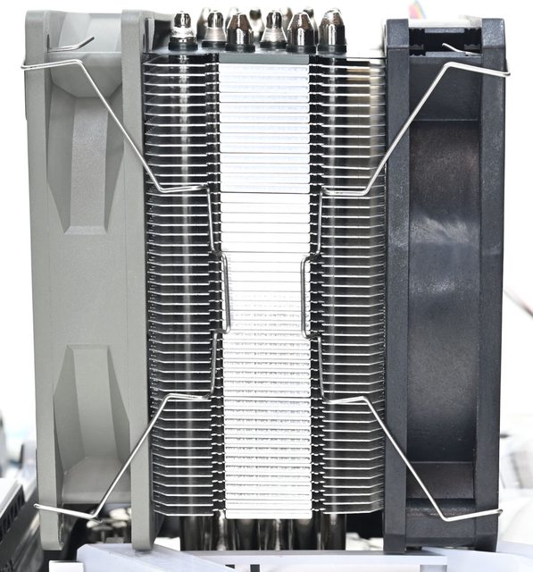▼散熱器本體底座兩邊各伸出6支直徑6mm無重力熱導管,並在熱導管上安裝47片鰭片