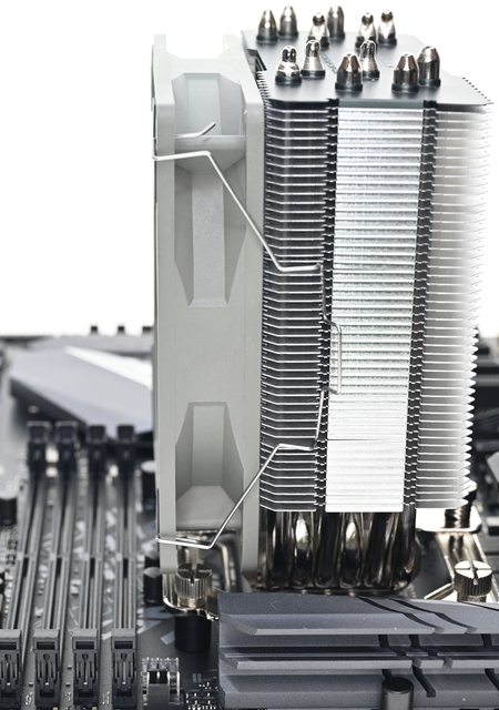 層鰭片,擴大散熱面積。隨附TL-C12C風扇採用S-FDB軸承,並提供2組風扇固定線扣,可