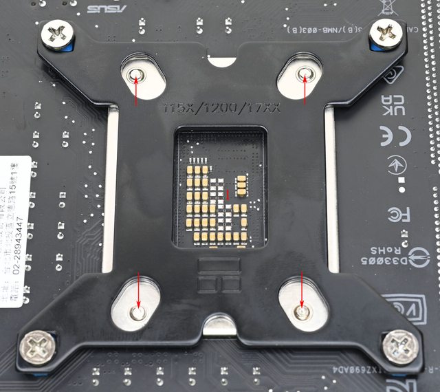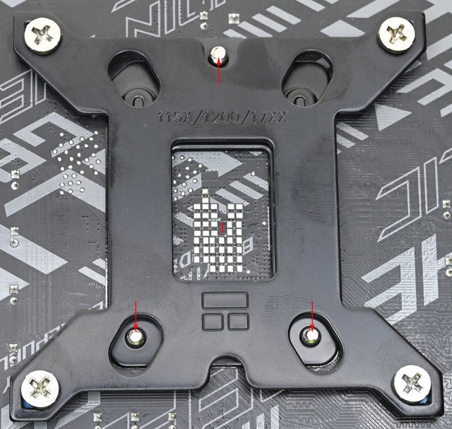 理器扣具底板3個螺絲鎖點位置(紅色箭頭)