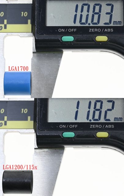 ▼LGA1700藍色套管(上)長度10.8mm,LGA1200/115x黑色套管(下)長度11.8mm